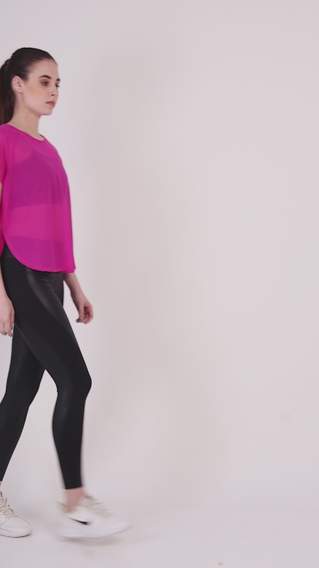 Our Hot Pink All Mesh Sheer Tee features a round neckline and is made from our exclusive performance fabric, which is supportive and soft to touch. The side cut gives a stylish element while also allowing free movement. Pair it with a colourful sports bra from Bodd Active for some extra sass.