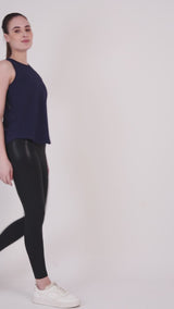 Introducing the Midnight Navy Open Back Tank, designed for any form of workout. This tank features a stylish open back and breathable mesh fabric to keep you cool and comfortable during intense sessions. Its sleek back design complements any activewear ensemble, while the relaxed fit ensures maximum freedom of movement. Perfect for the gym, yoga, or running, this tank combines modern style with high-performance functionality.