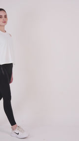 Our White Overlapping Tank is easy-to-wear and airy. The tank is constructed of our exclusive four-way performance mesh which can be paired with a sports bra or can be used as a cover-up as well. The tank is extremely lightweight, breathable & easy to wear.